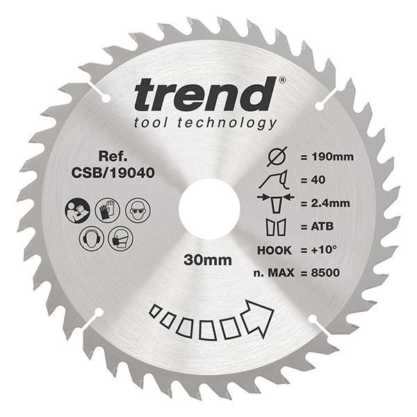 Trend Craft Combination Saw Blade 190mm Diameter x 40 Teeth x 30mm Bore x 2.6mm Kerf is a range of tungsten carbide tipped blades for wood and wood-based materials. For use in circular, plunge, and table saws, and available in a range of finishes. Ideal for ripping and trimming softwood, hardwood, plywood, MDF, and hardboard.